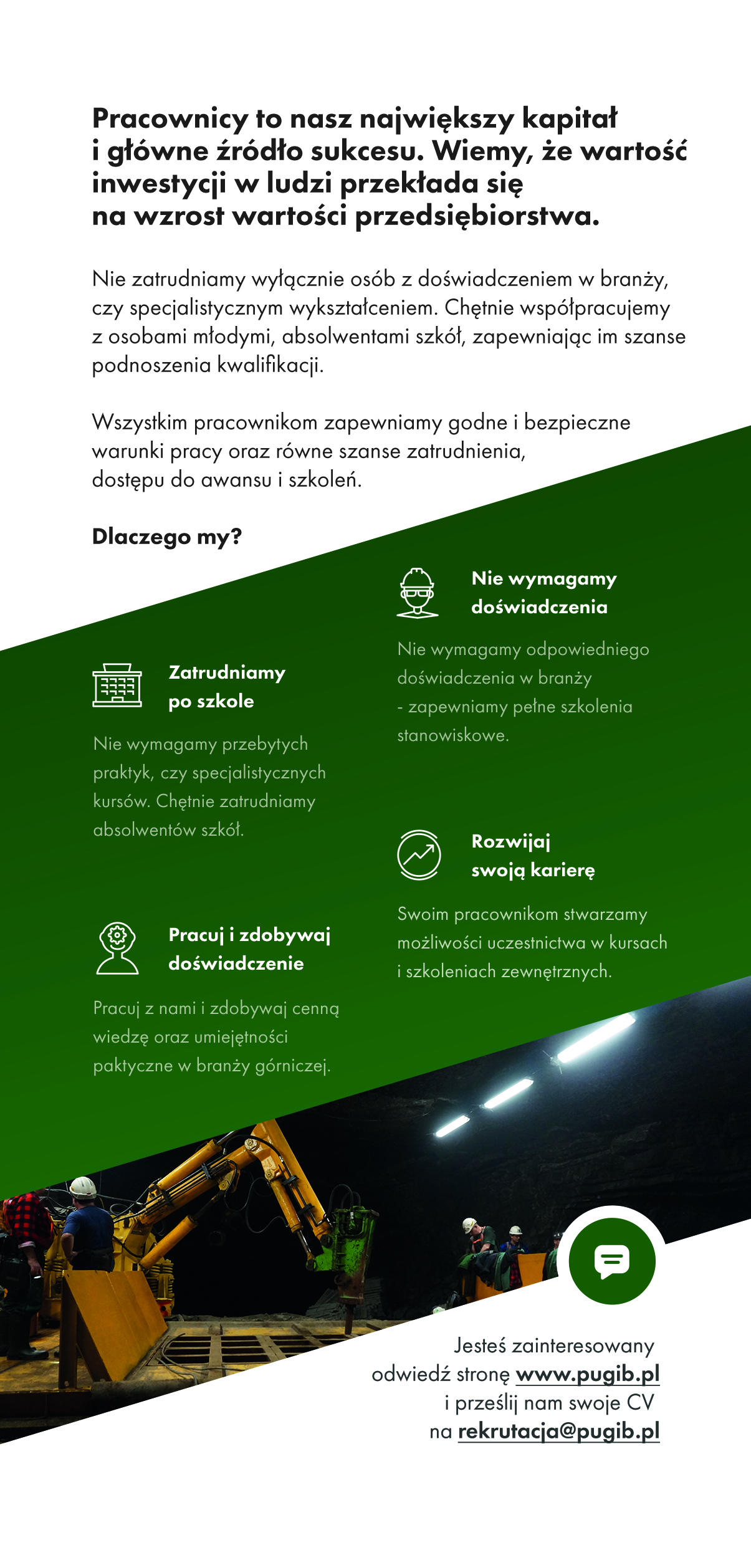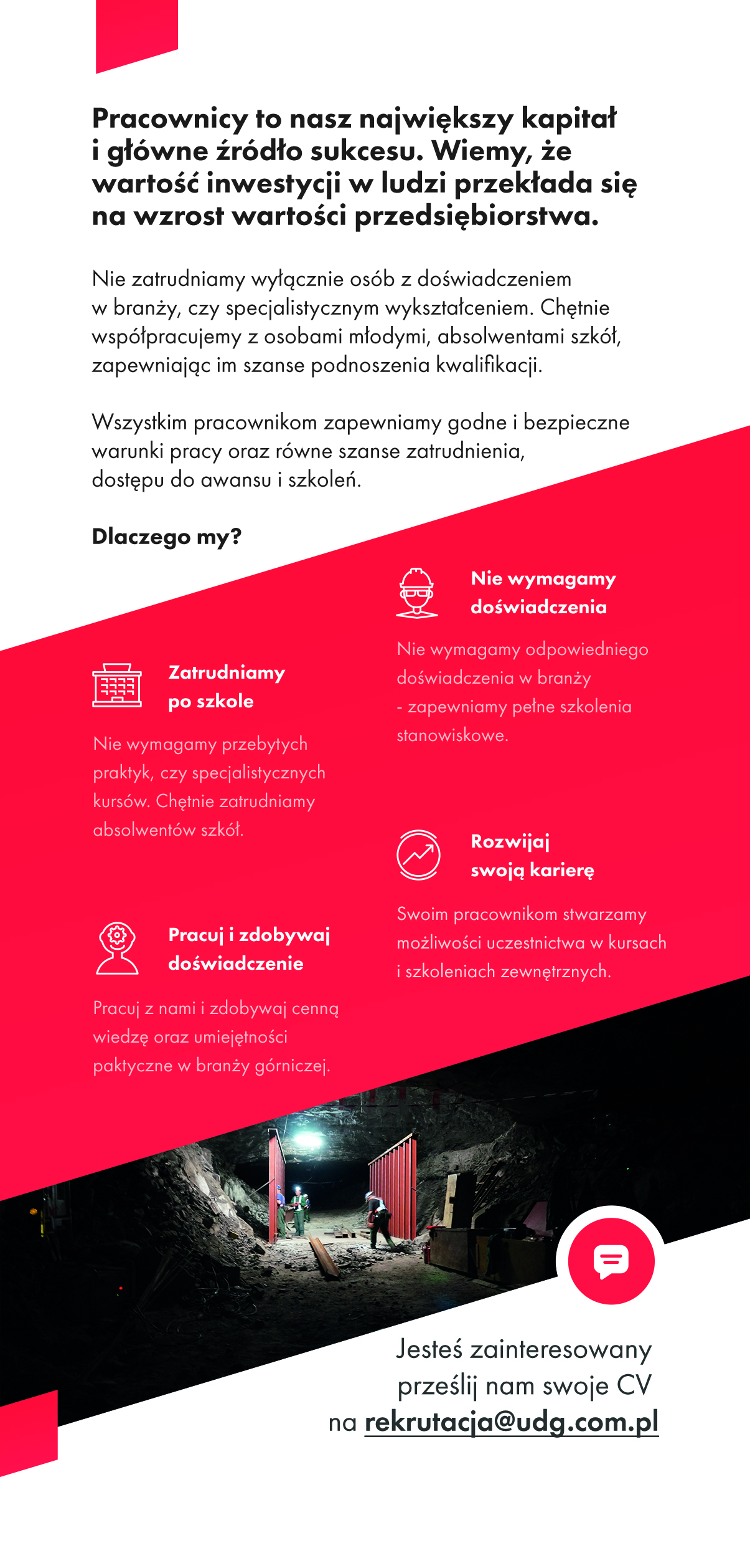 Reprezentujemy również bratnią spółkę Usługi dla Górnictwa Sp. z o.o. działającą na terenie ZG Rudna z oddziałem przy szybie R-III w Polkowicach.